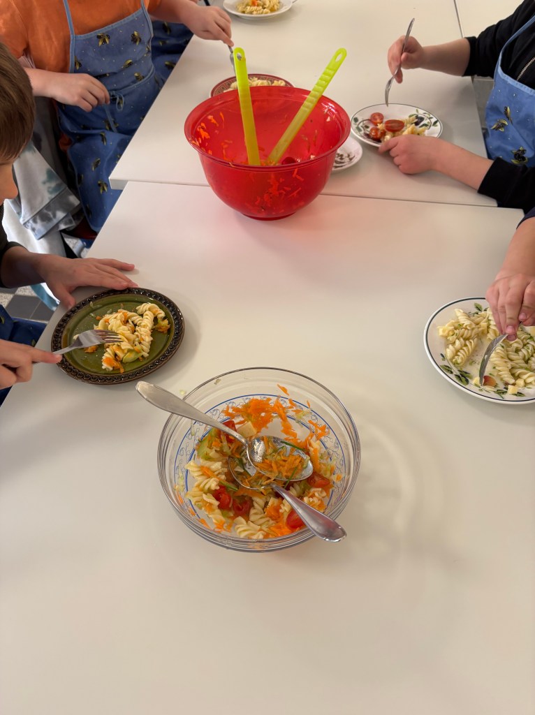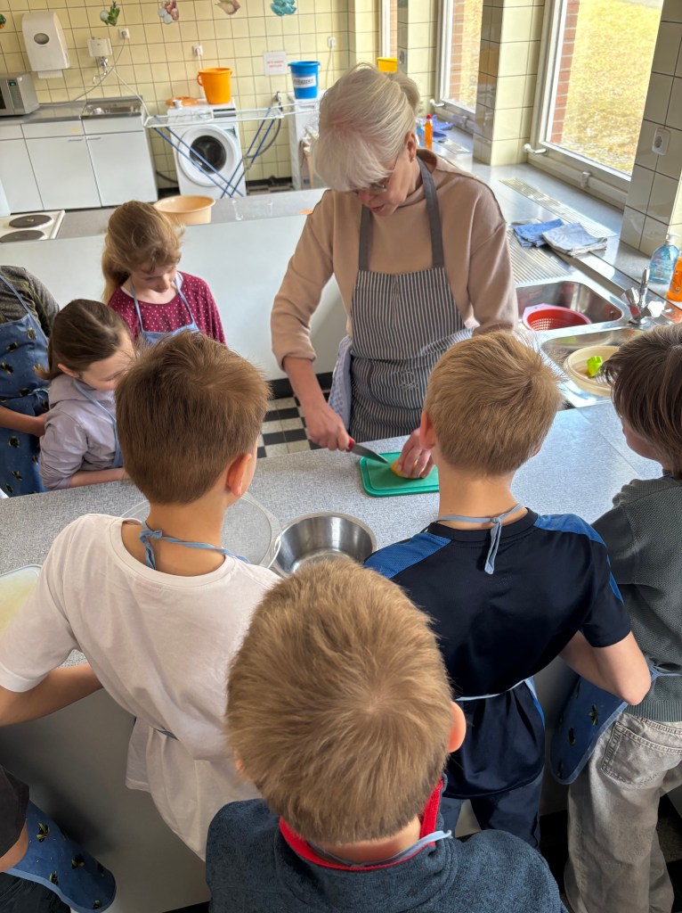 Die Jahrgangsstufe 3 machte im Rahmen der Gesunden Ernährung ihren Führerschein. Während sie Theoriewissen anhäuften, gab es immer wieder Praxisstunden. Die Schüler und Schülerinnen vertieften ihr Wissen und lernten neues kennen. Die Kinder bereiteten Brotgesichter zu, einen Nudelsalat und auch Obstsalat. Am Ende der Einheit durften sie für ihre Eltern und Verwandten ein gesundes Essen zubereiten, den Tisch dekorieren und eindecken und natürlich auch servieren. Alle Kinder haben sich sehr viel Mühe gegeben und haben viel Spaß gehabt. Natürlich haben auch alle Kinder bestanden. Wir bedanken uns recht herzlich bei Frau Janisch, die uns in den Praxisstunden unterstützt hat.