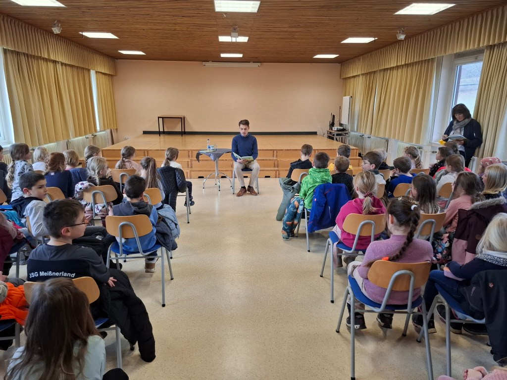 Im Januar bekamen wir Besuch vom Bürgermeister Finn Thomsen. Er las den Erst -und Zweitklässlern aus dem Buch “ Spielplatz-Alarm in Großalmerode“ vor. Im Anschluss nahm sich Herr Thomsen noch Zeit für Fragen der Kinder.