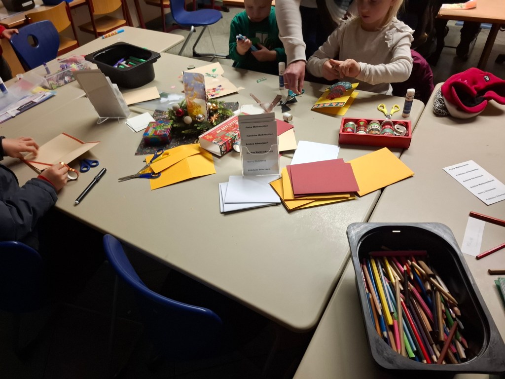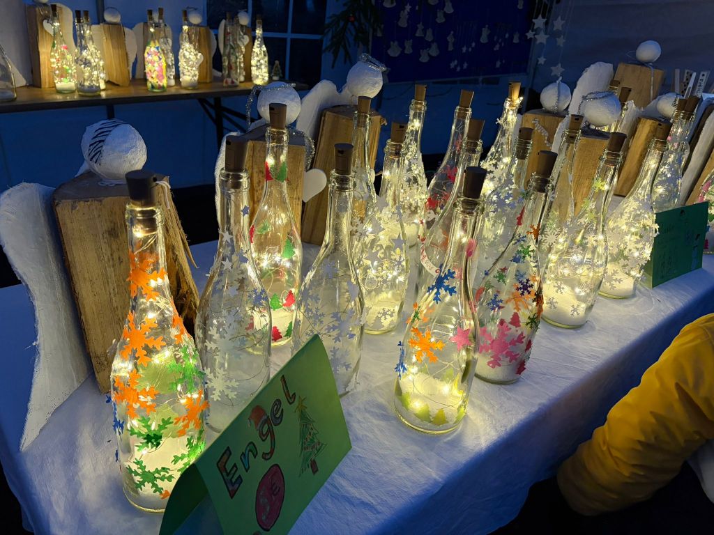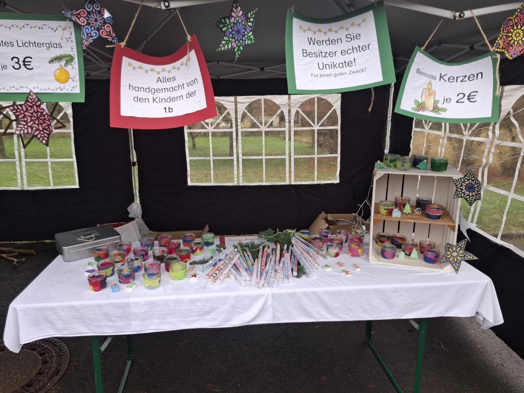 Am 12. Dezember 2025 fand an userer Schule ein Weihnachtsmarkt statt. Es strömten zahlreiche Besucherinnen und Besucher auf das festlich geschmückte Schulgelände, das sich für einen Nachmittag in eine kleine Weihnachtswelt verwandelte. Die vielfältigen Stände luden zum Stöbern und Genießen ein. Die Kinder präsentierten selbstgebastelte Dekorationen, kleine Geschenkideen und süße Leckereien. Dazu duftete der Geruch von Popcorn und Bratwürsten über den Hof und auch an warmen und kalten Getränken mangelte es nicht. Viele Gäste nutzten die Gelegenheit, noch kleine Weihnachtsgeschenke zu erwerben und gleichzeitig etwas Gutes zu tun. Von den Einnahmen soll es eine Anschaffung für den Schulhof geben. Ein besonderes Highlight des Abends war das gemeinsame Singen von Weihnachtsliedern. Zahlreiche Kinder, Eltern und Besucher stimmten sich dabei musikalisch auf die Adventszeit ein.