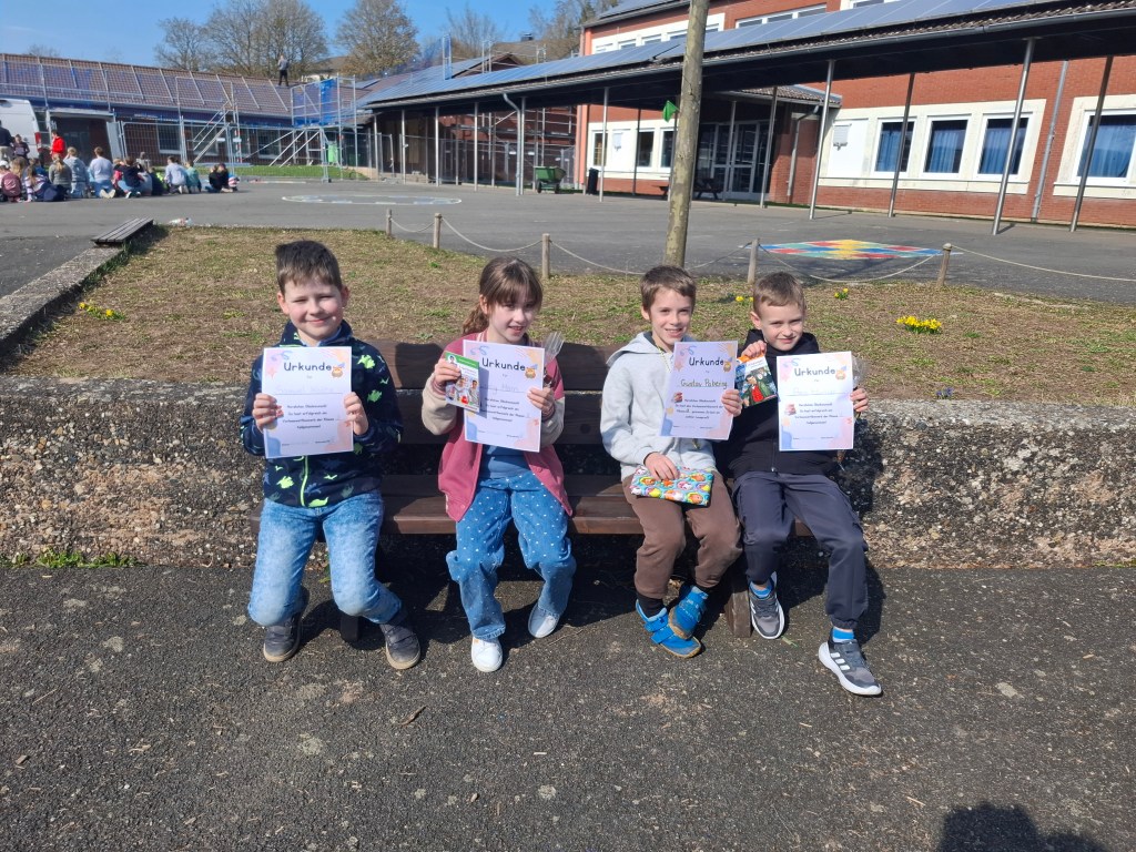 Die Meißnerlandschule in Walburg hat in diesem Jahr erstmals einen Vorlesewettbewerb durchgeführt. Die Klassen 2, 3 und 4 schickten jeweils zwei Kinder ins Rennen, die zuvor von ihren Klassen als beste Leserinnen und Leser ausgewäht worden waren. Beim Wettbewerb traten die Teilnehmerinnen und Teilnehmer gegeneinander an uns stellten ihr Können eindrucksvoll unter Beweis. Die besten Leserinnen und Leser wurden am Ende mit einer Urkunde, einer Medaille, sowie einem Buch ausgezeichnet. In der Jury wirkten ehemalige Lehrkräfte, aktuelle Kolleginnen und Kollegen, sowie der Bürgermeister von Großalmerode mit. Die Kinder hatten viel Freude. Sie zeigten großes Engagement und ihre Lesekompetenz. Der Tag war für alle Beteiligten ein voller Erfolg und hat große Begeisterung ausgelöst. Wir freuen uns schon darauf, den Vorlesewettbewerb im näcchten Jahr erneut durchzuführen.